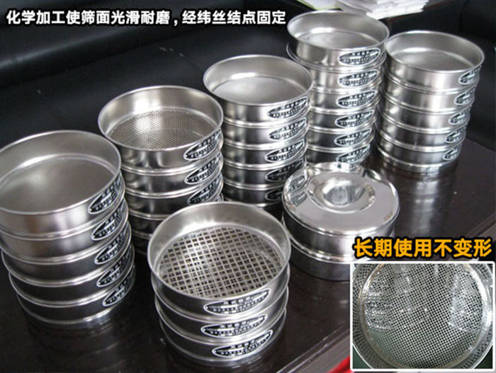 篩框采用SUS304(0Cr18ni9)不銹鋼拉伸拋光而成,壁厚0.6毫米,表面光可鑒人,整體成型堅固耐用,沒有磁性,篩網(wǎng)與篩框通過錫焊固定,不會松弛。能耐300度以下高溫。