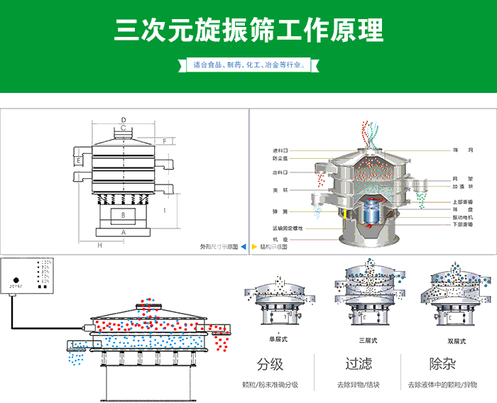 三次元旋振篩,超聲波振動篩,搖擺篩、 直線振動篩、直排篩、高頻振動
