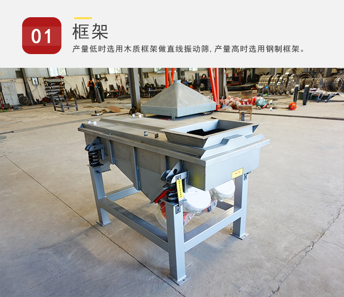 產量低時選用木質框架做直線振動篩,因為在物料篩分產量較大時容易斷裂。產量高時選用鋼制框架,鋼制框架的承受力較大,不易斷裂,不會造成對篩分過程的影響